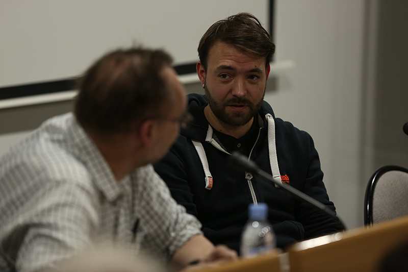 L'intervention d'Hubert Charuel s'est conclue par des échanges avec le public sur la réalisation de Petit Paysan, de l'écriture du scénario au montage, en passant par des questions plus personnelles sur la part de l'autobiographie du film ou les différentes influences cinématographiques que l'on peut y rencontrer.