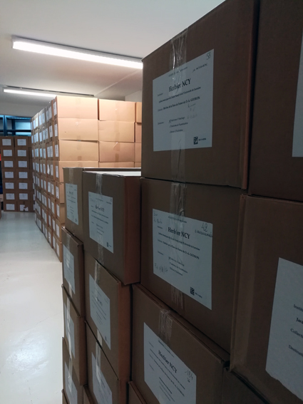 10 000 planches sont fixées via le projet par une équipe de E-ReColNat, mais il reste 30 000 planches à traiter en interne ! Un travail colossal commence alors… En plus des deux agents en place, une équipe de plus de 40 bénévoles se constitue. Une forte mobilisation et implication d’adhérents de l’AJABONA (association des amis des jardins botaniques de Nancy), d’adhérents de Floraine (Association des botanistes lorrains), d’adhérents de la SCHN (Société centrale d’horticulture de Nancy), d’adhérents de l’ALS (Académie lorraine des Sciences) et de particuliers, permet d’attacher ce nombre considérable de planches dans les temps… Les 320 cartons déménagent alors vers la plateforme de numérisation pour une durée de 6 mois. Aujourd’hui les images sont visibles sur le site E-ReColNat, un portail générique ouvert à tous (l’abréviation pour retrouver les collections nancéiennes est NCY).