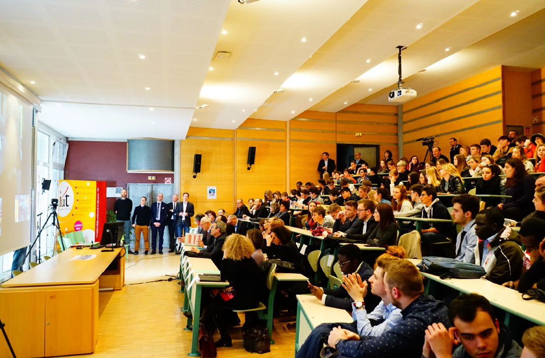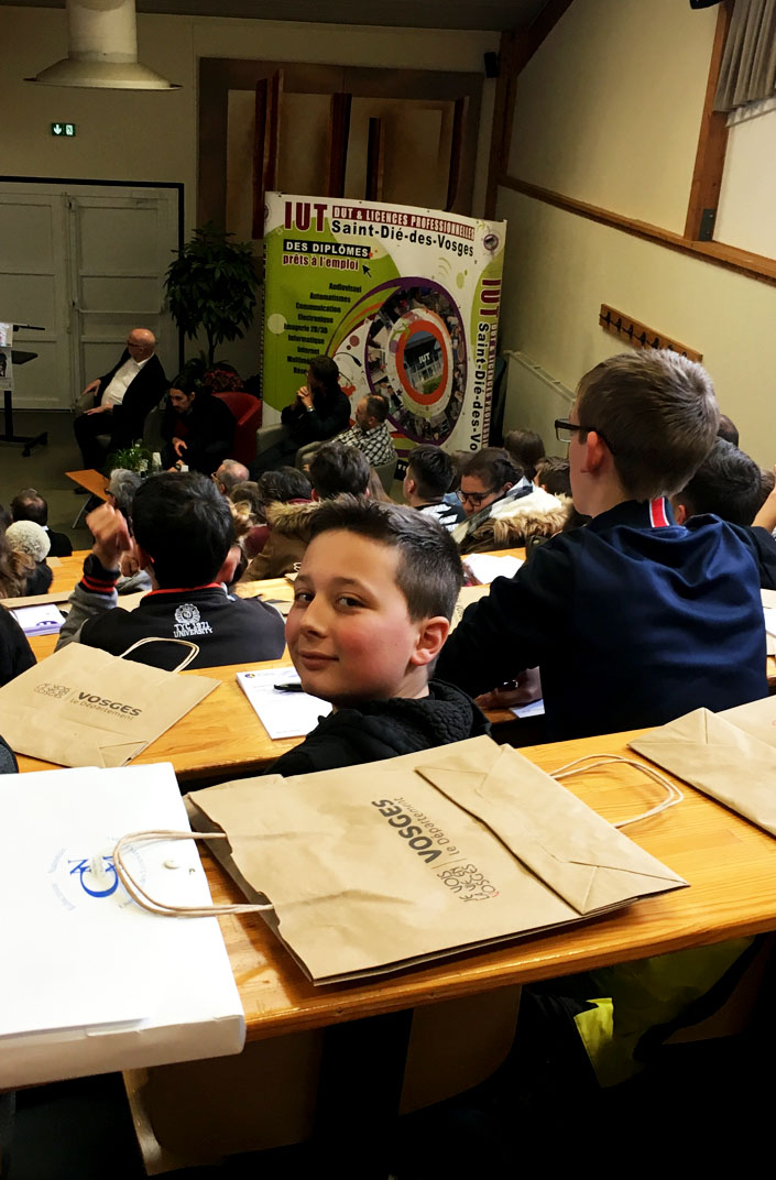 L'opération intitulée "6 entreprises innovantes avec les jeunes : En direct pour mieux se connaitre !" se déroulait en duplex depuis les 2 amphithéâtres des IUT d'Epinal et St-Dié :
