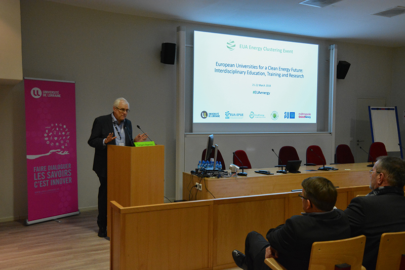 L’European University Association – EUA (l’équivalent de la Conférence des Présidents d'Université à l'échelle européenne) à travers sa Plateforme sur l`Energie et l`Environnement (EUA-EPUE) et en collaboration avec l’Université de Lorraine, la Conférence des présidents d’université et InnoEnergy, a organisé les 21 et 22 mars l’évènement « Universités européennes pour un avenir énergétique propre : éducation interdisciplinaire, formation et recherche », qui a rassemblé 28 intervenants qui ont délivré leur point de vue, leur vision et débattu des évolutions et changements de paradigme dans le domaine de l’enseignement supérieur et de la recherche sur l’énergie avec la perspective de la transition. On comptait parmi eux :