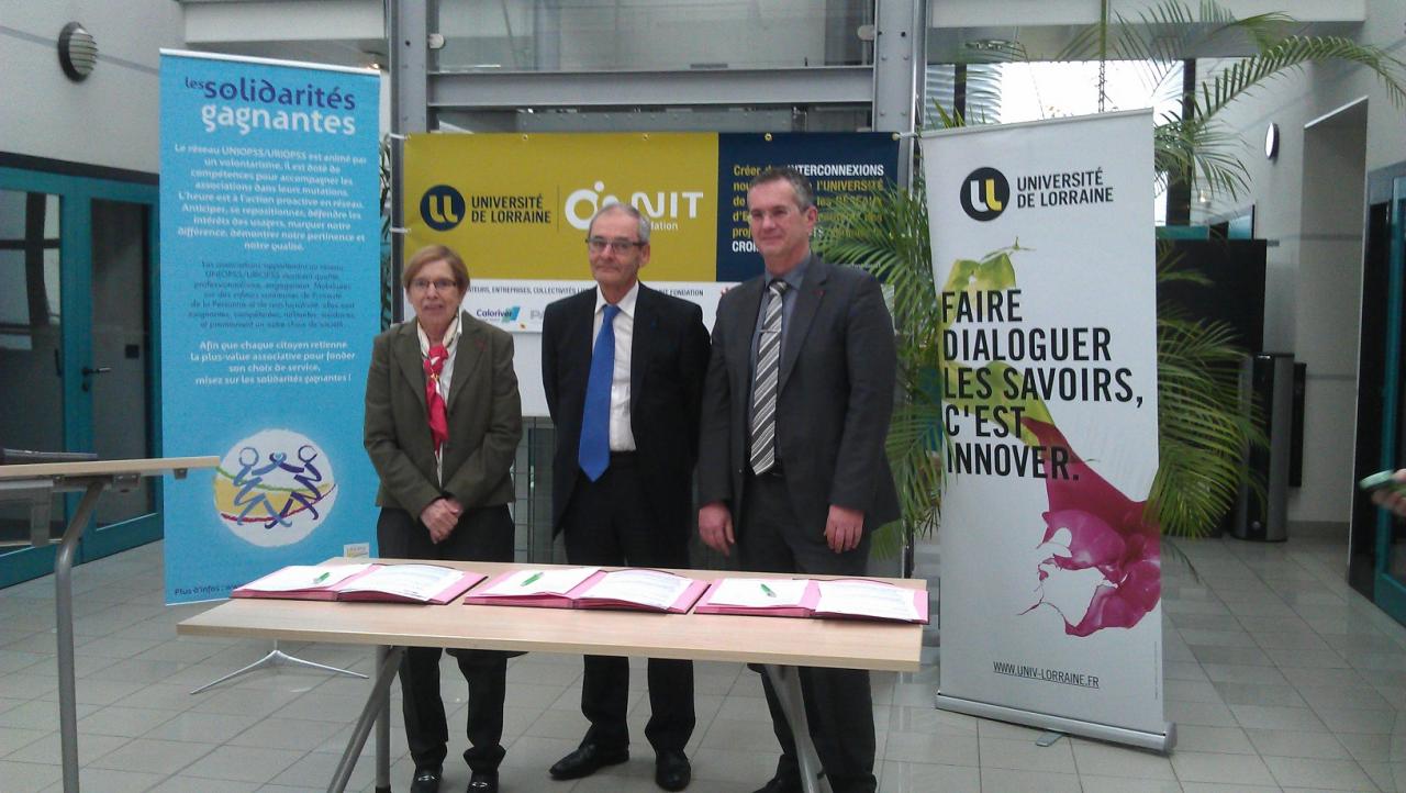 L'Université de Lorraine, représentée par son président Pierre Mutzenhardt et François Laurent, président de la Fondation de l’Université NIT- et l’URIOPSS - représentée par sa présidente Jocelyne Muller- ont signé lundi 10 février un accord cadre de partenariat. Ensemble, ces partenaires s’unissent pour créer le projet SAILOR (Santé Autonomie Innovation en LORraine). Au travers d’une convention, conclue pour une durée initiale de trois ans, ce projet d’envergure affiche une ambition claire pour 2023 : permettre à aux lorrains de vivre dans les meilleures conditions et avec la plus grande autonomie possible, et dans ce cadre :