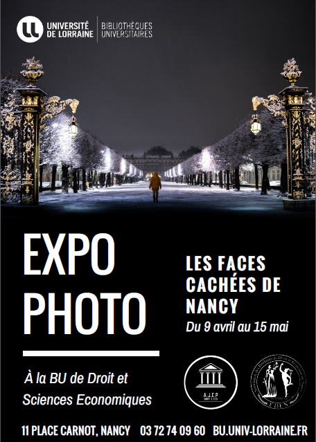 De la Place Carrière à l'Eglise Saint-Epvre, en passant par les coins les plus mystérieux de la ville, retrouvez l'exposition "Les Faces cachées de Nancy" organisée par les associations EDEN et AJEP (associations étudiantes du campus Carnot-Ravinelle) entre le lundi 9 avril et le mardi 15 mai 2018 à la Bibliothèque Universitaire de Droit et Sciences économiques.