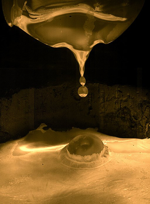 Illustration : Interaction de gouttes fondues avec un bain de métal (acier maraging) liquide © Institut Jean Lamour