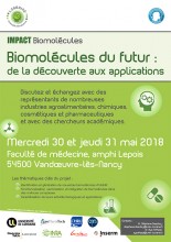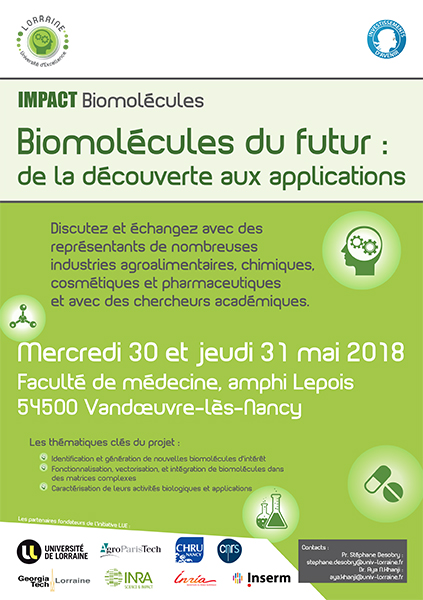 Inscription en ligne (date de clôture fixée le 15 mai 2018) : http://www.univ-lorraine.fr/biomolecules.sciences