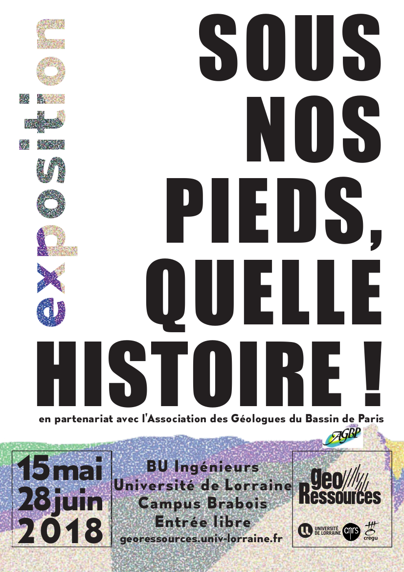 Conçue par le laboratoire de recherche GeoRessources (Université de Lorraine, CNRS, CREGU), en collaboration avec l'Association des Géologues du Bassin de Paris, l'exposition "Sous nos pieds, quelle histoire !" répond à toutes vos questions à la BU Ingénieurs Brabois du 15 mai au 28 juin, du lundi au vendredi de 8h à 19h.