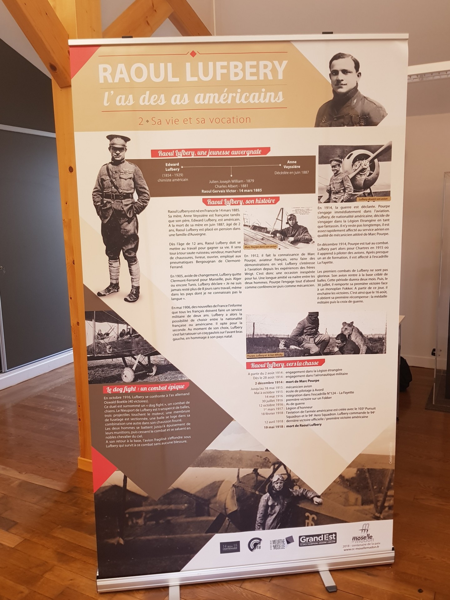 La première exposition a été présentée ce vendredi dernier à Maron à l'occasion d'un hommage à l'aviateur américain Raoul Lufbery, un évènement labélisé par la Mission Centennaire, et en présence du second lieutenant Ciarra McCarthy venu représenter le Consulat Général des Etats-Unis de Strasbourg.