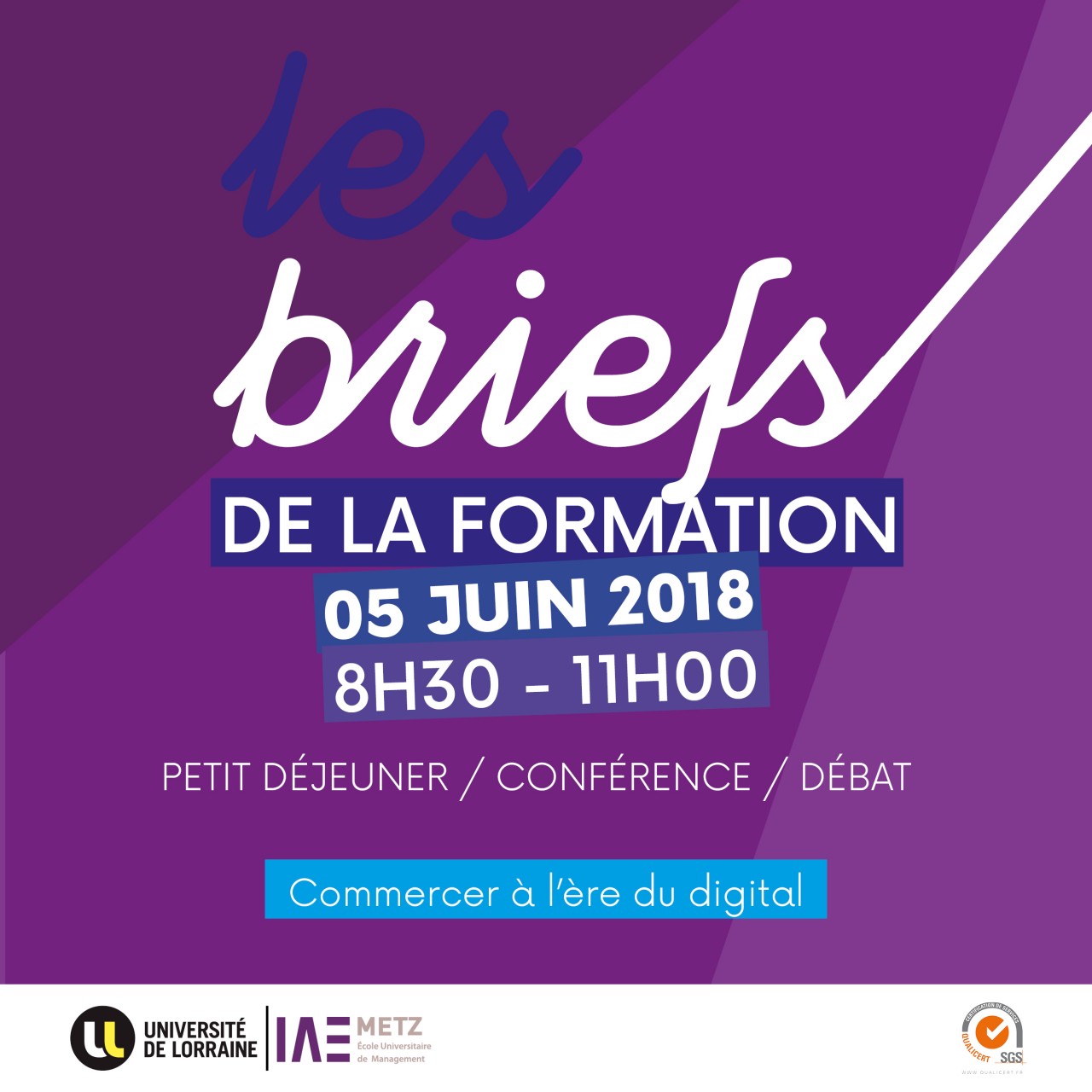 Matinale organisée dans le cadre des "Briefs de la Formation" de l'IAE Metz (Université de Lorraine). Les "Briefs" sont des rendez-vous sous forme de conférences, de débats, de témoignages, d'échanges autour de thématiques touchant la formation professionnelle et le monde de l'enseignement supérieur.