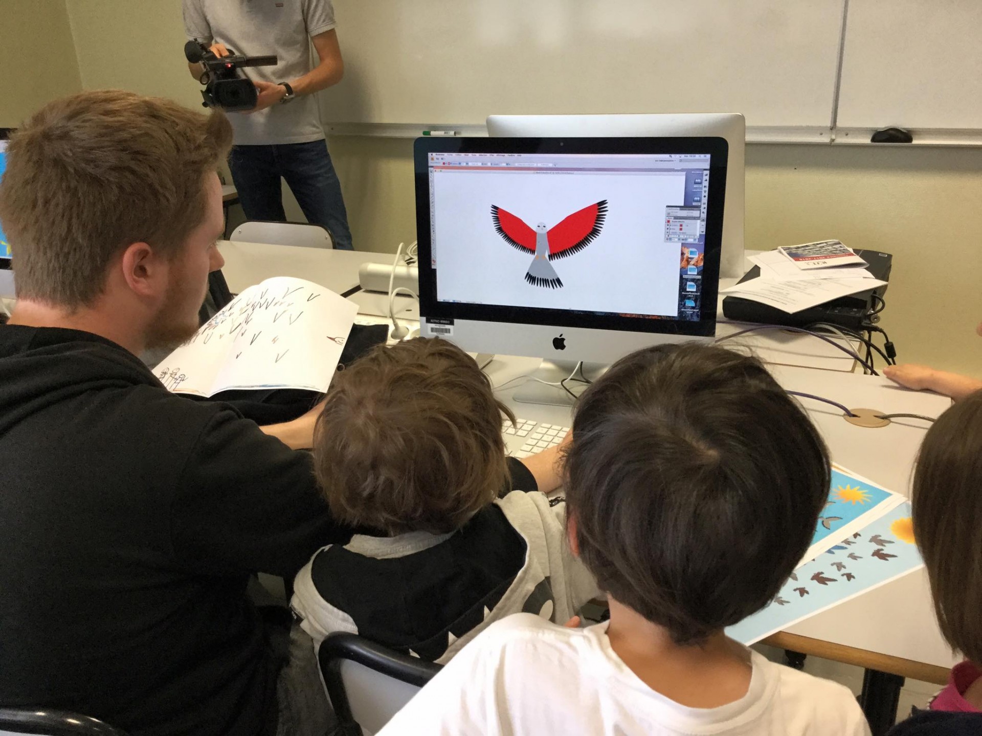 L'idée directrice du projet était de faire le dessin du dessin mais aussi et surtout le dessin du dessein ! Les élèves de la maternelle Charlemagne ont dans un premier temps réalisé des dessins sur papier que les étudiants ont redessinés dans un deuxième temps avec les outils informatiques utilisés dans leur formation "Métiers du multimédia et de l'internet". Les étudiants ont dû "traduire" le dessin sans trahir l'idée initiale des enfants. Les petits artistes ont découvert leurs oeuvres ce mardi 29 mai lors d'une rencontre avec les étudiants et les enseignants qui leur ont fait la démonstration des logiciels de PAO et qui s'est terminée par un goûter de 10h00. Pour nos étudiants en MMI, l'objectif pédagogique, outre l'amélioration de la maitrise des outils et la découverte de nouvelles fonctionnalités en PAO (publication assistée par ordinateur), était de développer leurs capacités à trouver un espace de créativité malgré les contraintes (contrainte libératrice).