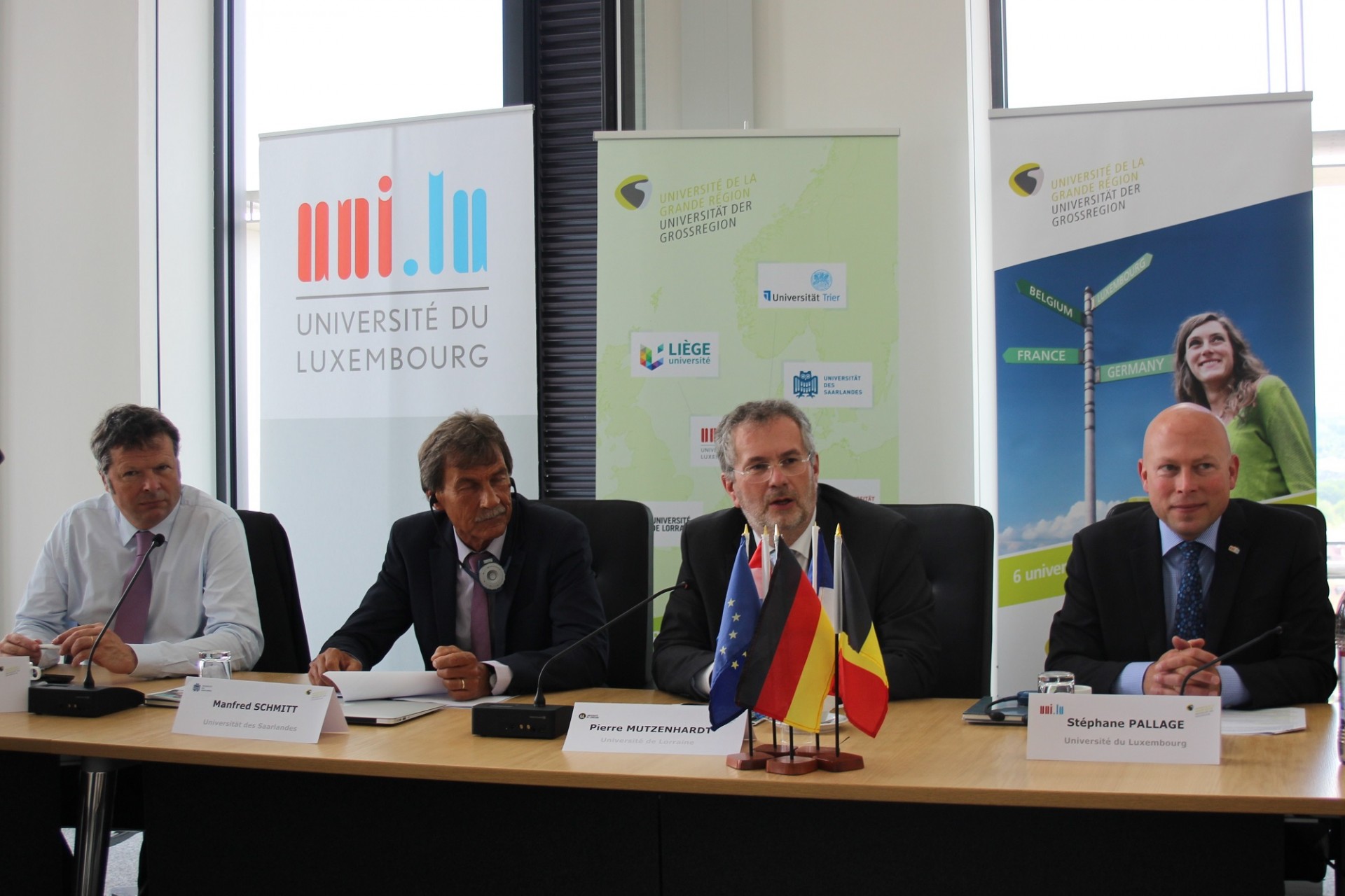 « Nous souhaitons offrir dans le futur aux étudiants de nos universités la possibilité d’être de vrais citoyens européens, conscients de leur identité et de sa force, mobiles et multilingues », a précisé Stéphane Pallage, Recteur de l’Université du Luxembourg. Grâce à des formats pédagogiques innovants, un accompagnement particulier et un soutien à la mobilité, les étudiants et doctorants de l’UniGR pourront accéder à un enseignement « sans frontières » adapté à leurs besoins et leurs attentes. Les présidents et recteurs ont également souligné que l’action des universités européennes doit couvrir l’ensemble des missions universitaires – l’enseignement, mais aussi la recherche et l’innovation – et ainsi agir efficacement sur le triangle de la connaissance.