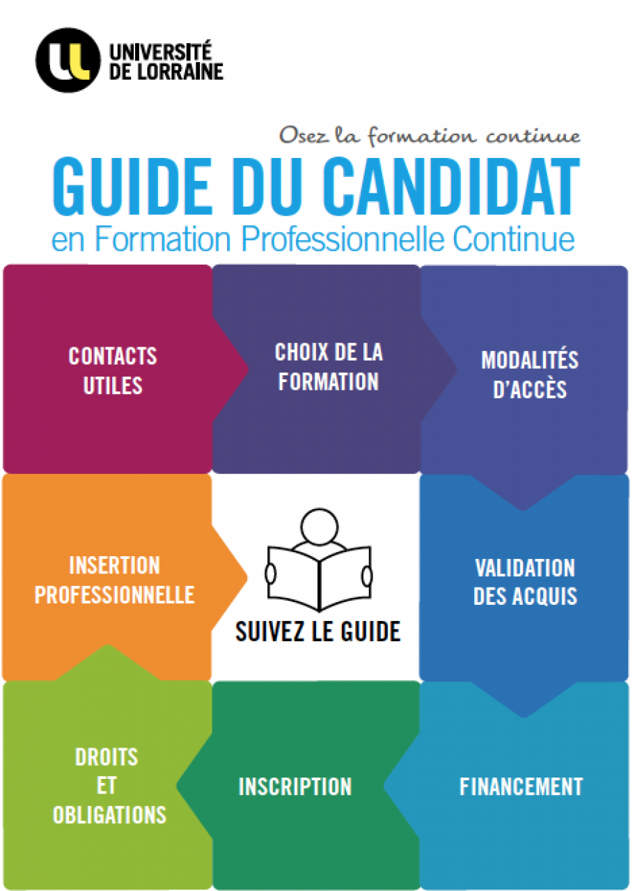 Le dispositif d’information vient d’être complété par la mise à disposition du guide du candidat en formation professionnelle continue qui regroupent toutes les informations utiles tout au long du processus de formation :
