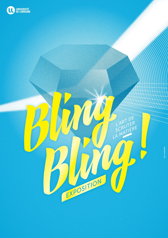 En 1914, Max von Laue relie le phénomène de déviation des rayons X par un cristal à l’agencement des atomes qui le composent et décroche ainsi le prix Nobel de physique. Un siècle plus tard, l’exposition « Bling Bling ! » propose de scruter la matière cristalline à travers cinq personnages : la tante bourgeoise, le neveu geek, la petite sœur, le père et l’aïeul.