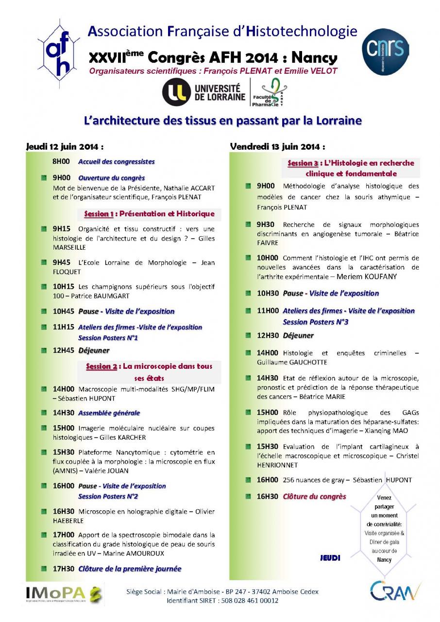 L'Association française d'histotechnologie (AFH) organise son congrès annuel, les 12 et 13 juin 2014, à Nancy.