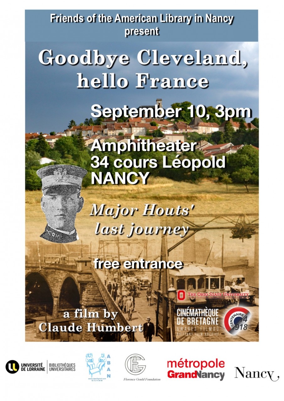 Les Amis de la Bibliothèque Américaine de Nancy vous invitent à assister à la projection du film de Claude Humbert "Goodbye Cleveland, hello France", film relatant le dernier voyage du major Houts.