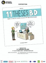 À l’occasion des finales de l’Université de Lorraine au concours Ma thèse en 180 secondes 2016-2018, l’université s’est tournée vers le duo de dessinateurs Peb & Fox pour adapter en bande-dessinée les projets de recherches des doctorants finalistes. L'exposition "11 thèses en BD" reprend une sélection de planches des ouvrages imprimés pour l'occasion. Des travaux en biologie, santé, environnement, sociologie, géologie, mathématiques... y sont présentés avec un ton décalé et humoristique.