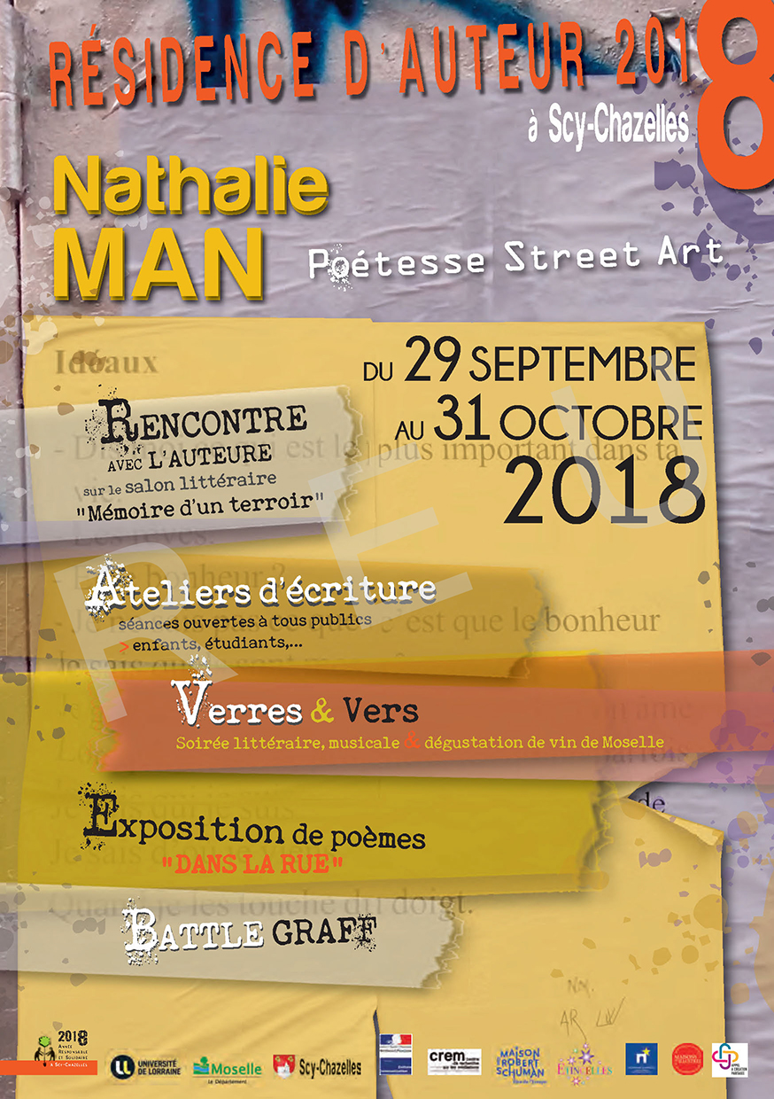 Ce salon signe notamment le lancement de la résidence d’auteur de Nathalie Man, poétesse street art, organisée par le CREM, en collaboration avec le département de la Moselle, la Drac Grand Est et la mairie de Scy-Chazelles.
