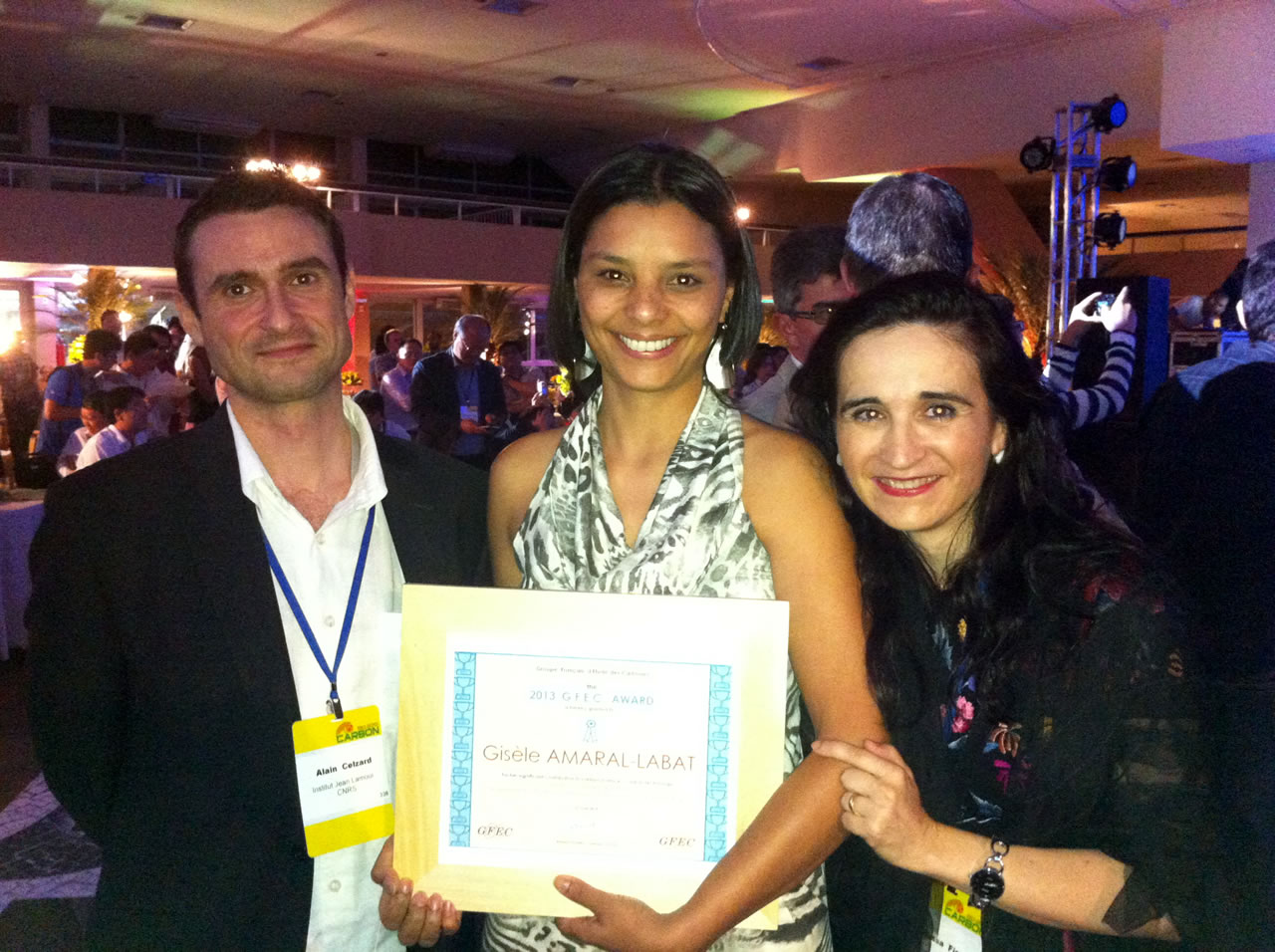 Le Prix a été remis, avec un chèque de 1000 €, par le président du GFEC, le Dr Rolland Pellenq (CINAM-CNRS, Marseille et CEE-MIT, Cambridge, MA) lors du dîner de gala de la Conférence Mondiale du Carbone, le 19 juillet 2013 à Rio de Janeiro (photos ci-dessous).
