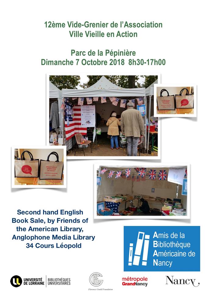 L'association des Amis de la Bibliothèque Américaine de Nancy participera à la 12ème édition du vide-grenier annuel organisé par l'association Vieille Ville en Action.