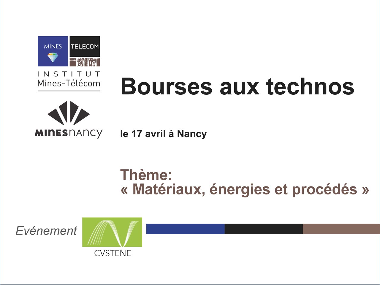 Dans ce cadre, Mines Nancy et l'Institut Mines-Télécom vous invitent à participer à la « Bourse aux technos » du 17 avril dans les locaux de Mines Nancy.