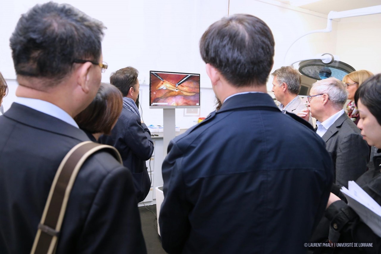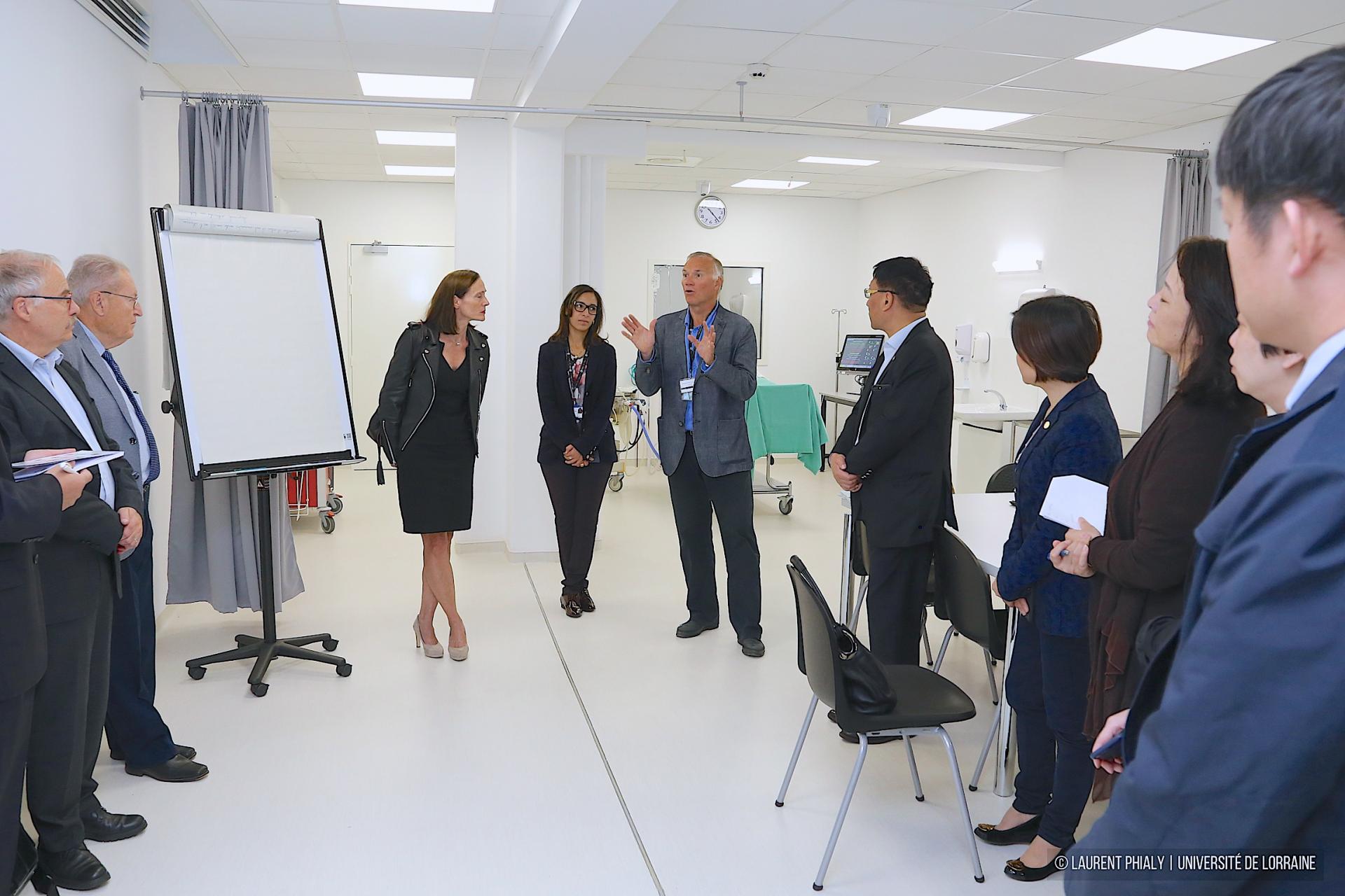 Monsieur le Pr. ZHANG Yong, Conseiller auprès du Président pour les Affaires francophones, accompagné de plusieurs professeurs, médecins et d’une grande partie de l’équipe de direction de l’Hôpital de Renji ont pu échanger avec les équipes de l’HVL et découvrir les plateformes de simulation :