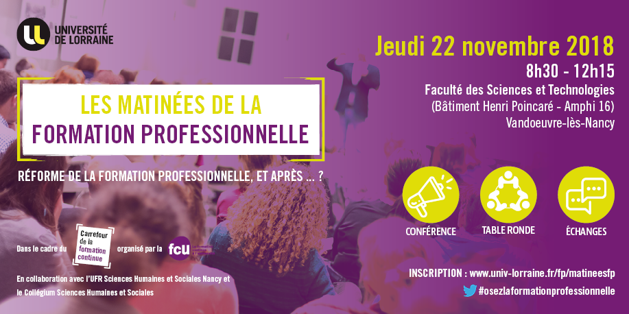 Les matinées de la formation professionnelle sont organisées en collaboration avec l'UFR Sciences Humaines et Sociales Nancy et le Collégium Sciences Humaines et Sociales.