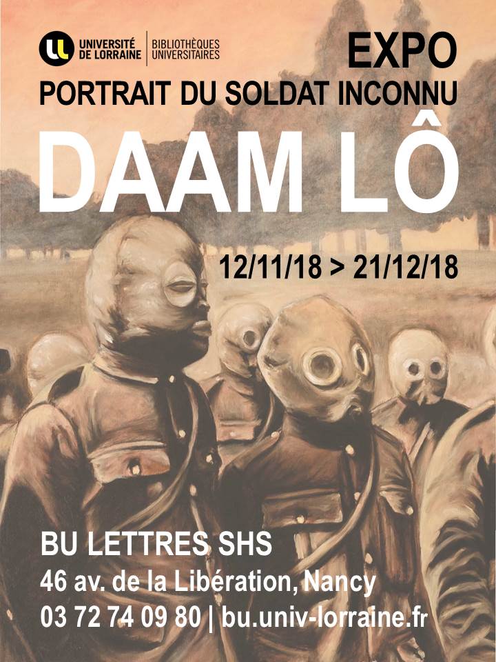 Daam Lô, artiste peintre, propose une exposition Portrait du soldat inconnu du 12 novembre 2018 au 21 décembre 2018 à la Bibliothèque universitaire de lettres, sciences humaines et sociales de Nancy.