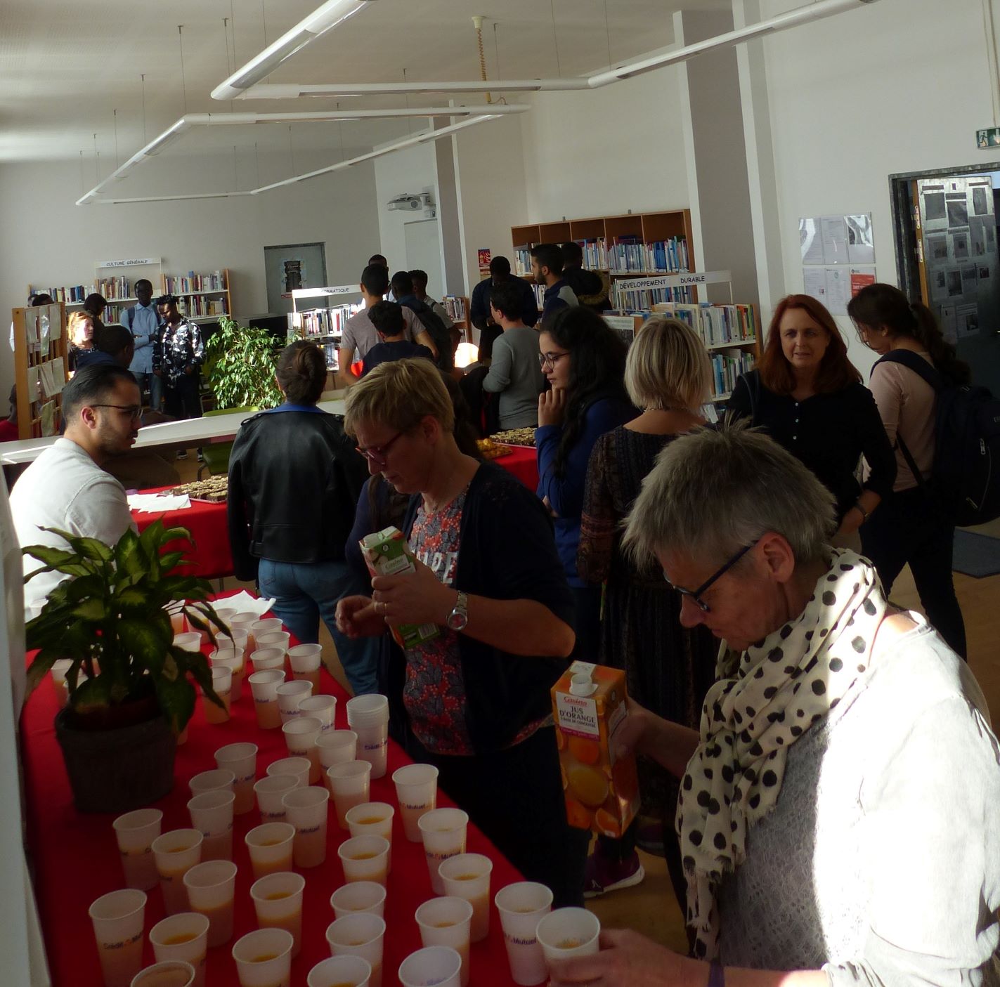 Pour la troisième année, l’IUT Épinal-Hubert Curien a organisé un goûter à la bibliothèque pour les étudiants étrangers, auquel le personnel était également convié. Jeudi 18 octobre 2018 après-midi, une cinquantaine de personnes étaient présentes. Un moment fort de convivialité et d’échanges pour ces étudiants arrivés de loin. Cette année, plus de 70 étudiants étrangers sont inscrits, venant de différents pays : Chine, Congo, Gabon, Grèce, Maroc, Tunisie, Sénégal, Mexique.
