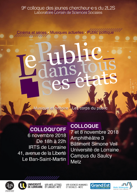 Pour sa neuvième édition, le colloque des jeunes chercheur.e.s du Laboratoire lorrain se sciences sociales (2L2S) organisé par les doctorant.e.s et jeunes docteur.e.s du laboratoire a choisi de travailler la question « du/des public(s) dans tous ses/leurs états », objet fédérateur et ouvrant à l'interdisciplinarité (ou transdisciplinarité). Le choix a porté sur ce sujet, que l’on peut qualifier de vaste, de concept-chapeau car le terme concerne de nombreux « publics » et qu’il sera question de l’étudier au regard des différentes méthodologies pour l’appréhender, de nouvelles approches et des défis qu’il soulève aux acteurs impliqués par la problématique du « public » grâce aux recherches menées par des jeunes chercheur.e.s en France et à l’étranger. La notion de « public » étant une passerelle entre les différentes disciplines scientifiques.