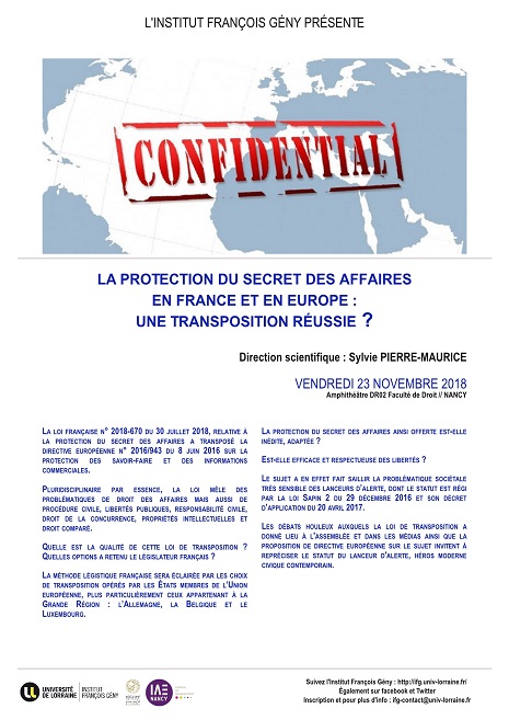 La loi française n° 2018-670 du 30 juillet 2018, relative à la protection du secret des affaires a transposé la directive européenne n° 2016/943 du 8 juin 2016 sur la protection des savoir-faire et des informations commerciales.