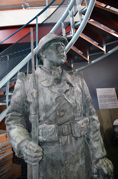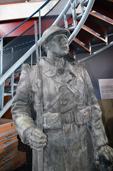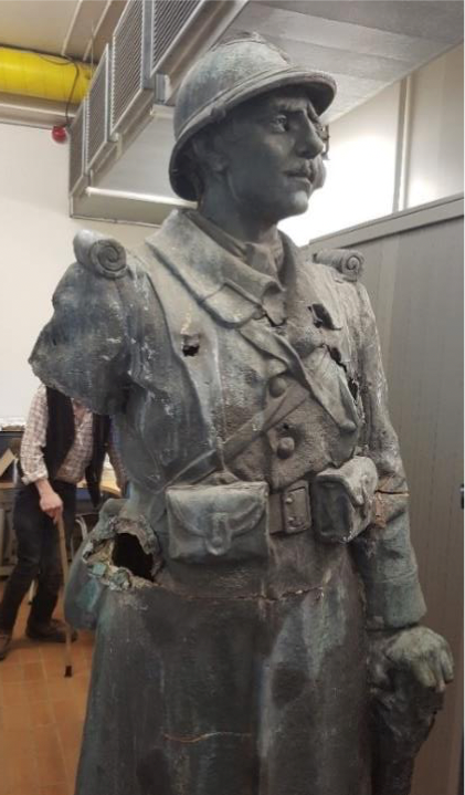 Cette statue a connu des préjudices de la seconde guerre mondiale et un démontage « violent » en 2014. Le fusil de la statue du soldat a été particulièrement dégradé et il ne lui restait que la pointe et sa baïonnette.