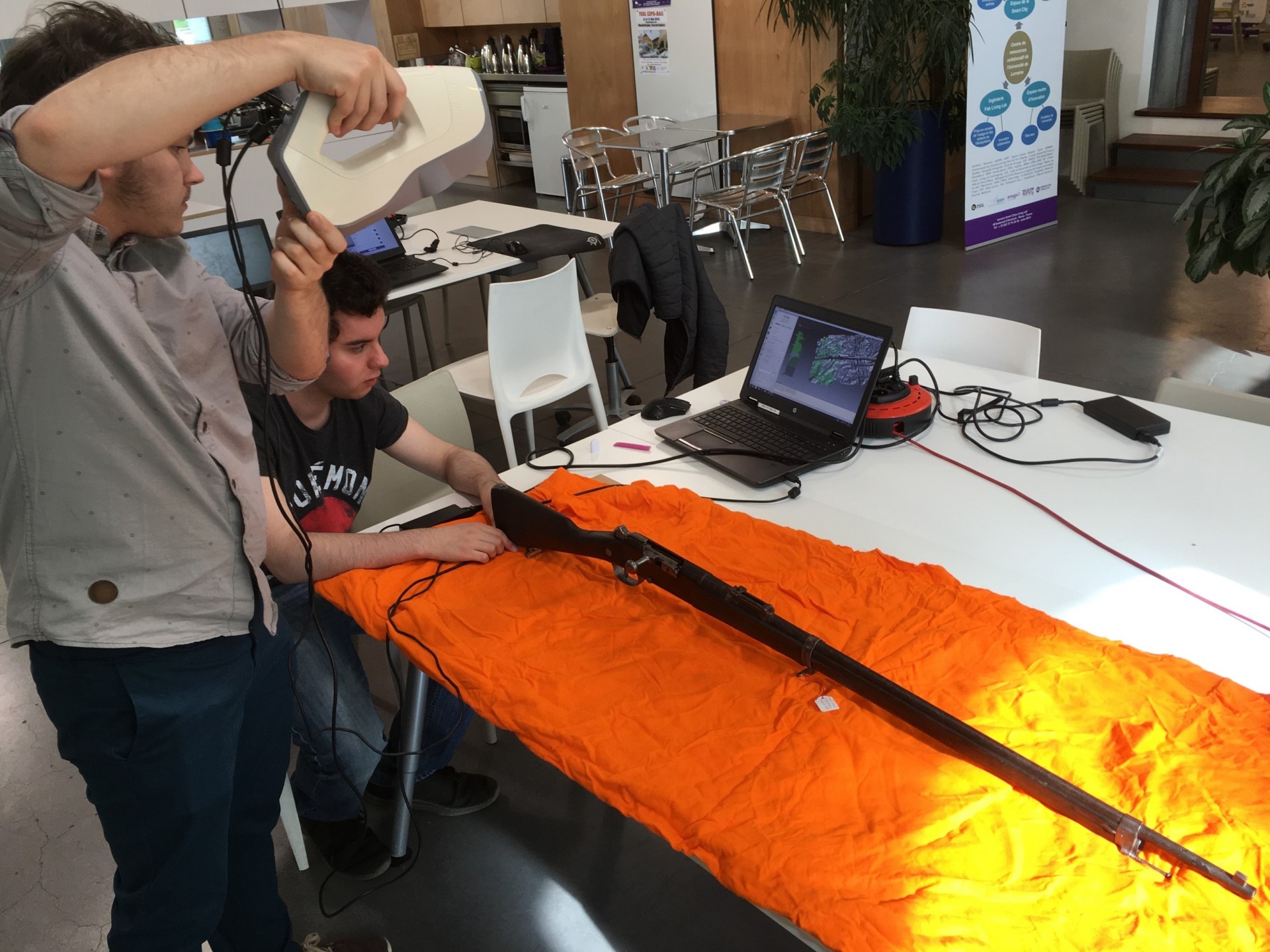 Avec le concours d’un binôme d’étudiants de l’EXIA.CESI en stage, l’équipe du LF2, a réalisé une copie numérique en 3D d’un fusil d’époque pour reconstituer cette partie. Grâce au prêt d’un fusil modèle Lebel 1886 par le Musée de la Guerre de 1870 et de l’Annexion de Gravelotte et à l’utilisation du Scanner Artec EVA du Lorraine Fab Living Lab®.