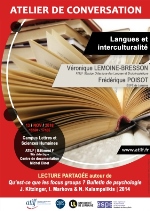 Le premier ATELIER DE CONVERSATION enchainant le deuxième, animés par Véronique Lemoine-Bresson, enseignante-chercheure à l'ESPÉ, ont lieu respectivement les mardi 13/11/2018 | 16h-17h, et le second mercredi 14/11/2018, 11h/12h au centre de documentation Michel Dinet, site "didactique" (bâtiment F) destinés aux étudiant.e.s.