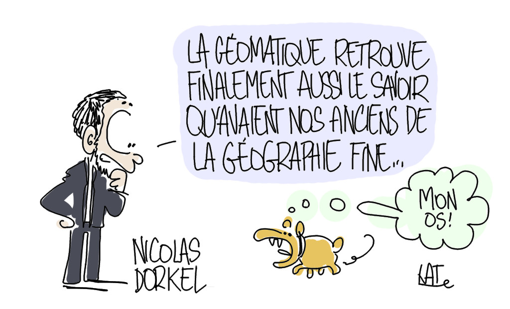 Dans tous les cas, on le voit, le développement de la géomatique se traduit par un « entrelacement » de technologies. C’est d’ailleurs ce que souligne Nicolas Dorkel, du laboratoire LOTERR, qui animait le Brunch. En effet, il rappelle que, pour les géographes, « la géomatique servait en premier lieu à faire des cartes. Le Brunch m’a appris à quel point faire des cartes est devenu l’un des items possibles », mais ce n’est pas le seul : elle permet en effet « de deviner l’invisible et nous [aide] à nous projeter ». Et ce jusque dans le passé, comme le propose une application développée par l’Institut géographique national et forestière (IGN), « Remonter le temps », qui offre à chacun la possibilité de découvrir les évolutions du territoire au fil du temps.