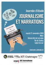 Le Crem (Centre de recherche sur les médiations, Metz) organise, le mardi 27 novembre 2018, une journée d’étude intitulée Journalisme et narrations, dans le cadre de son programme quinquennal « Narrations de la société/Sociétés de la narration » (2018-2022). L'objectif est de penser le journalisme et ses évolutions dans une perspective narratologique : interroger la manière dont les nouvelles modalités de la circulation de l’information actualisent (ou non) les approches classiques narratologiques portant sur des questions de structure, de point de vue et d’actants. Venez nombreux !
