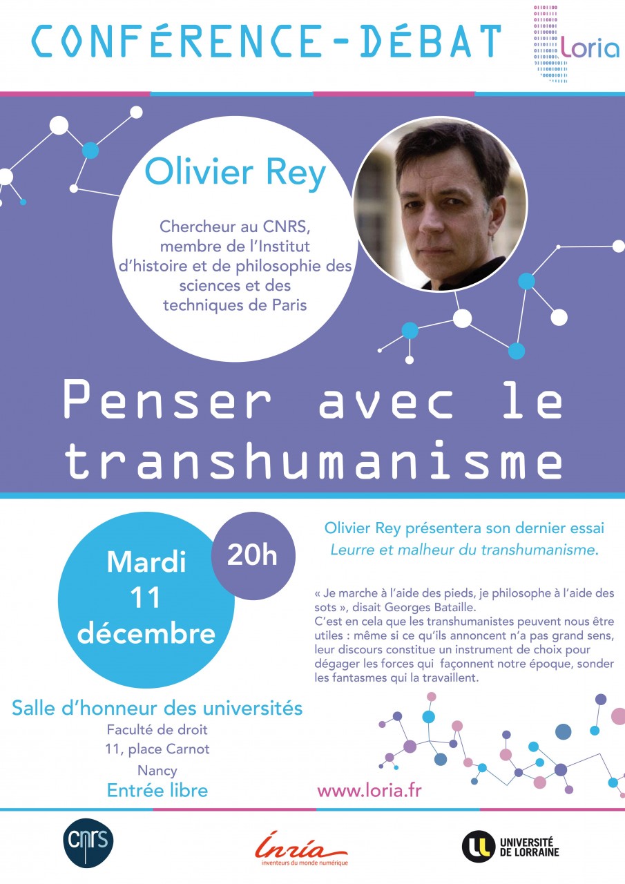 Olivier Rey, chercheur au CNRS, sera l’invité de la prochaine conférence-débat du Loria.