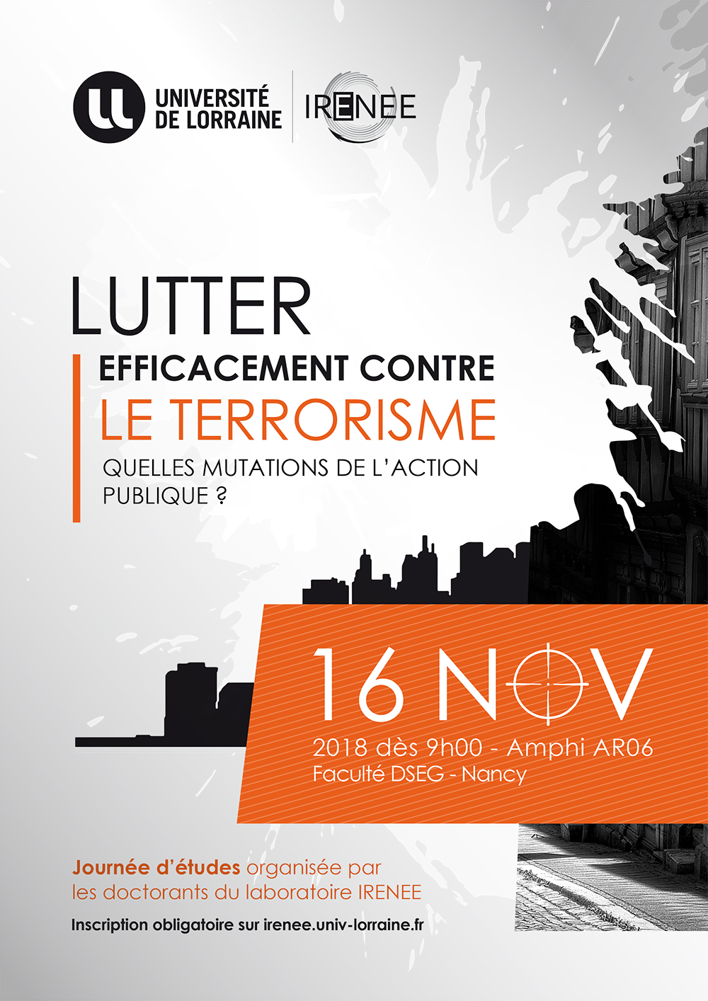 Dans le prolongement des activités scientifiques de l’IRENEE, il a été organisé le 16 novembre 2018 au sein de cet Institut, la traditionnelle journée d’études des doctorants qui avait pour thème : « Lutter efficacement contre le terrorisme : quelles mutations de l’action publique ? ».